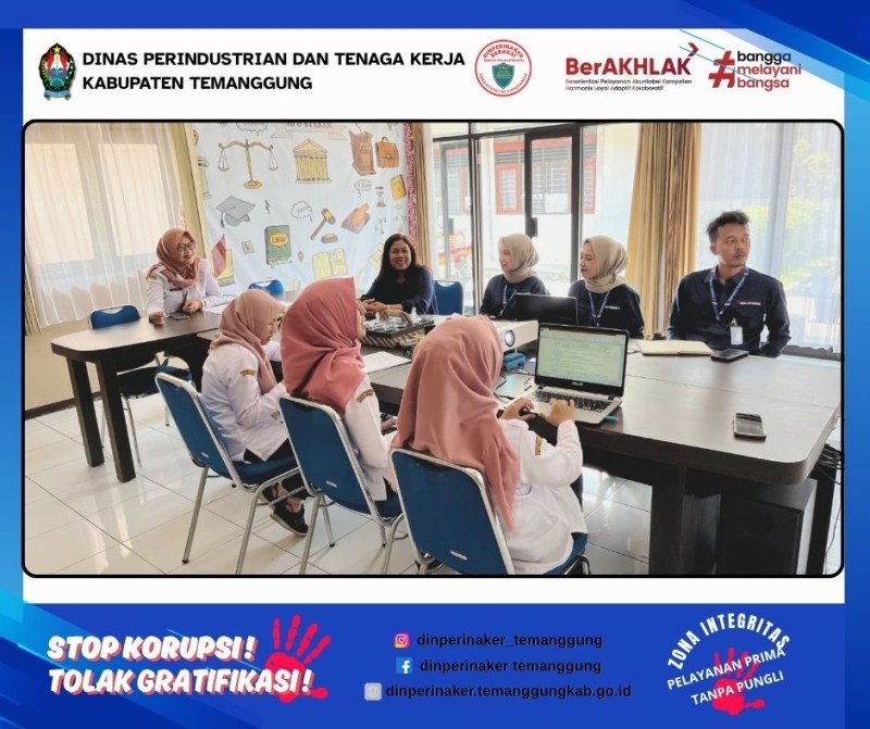 Kategori Smart Society (Masyarakat Cerdas) Kategori: Smart Society (Masyarakat Cerdas) Sekretariat 09 Okt 2025 13:48:00 14 Pelayanan kartu AK 1 / Kartu kuning bagi pencari kerja Selengkapnya Kategori: Smart Society (Masyarakat Cerdas) Sekretariat 09 Okt 2025 13:34:00 15 Sosialisasi Pencegahan TPPO dan TPPM Selengkapnya Kategori: Smart Society (Masyarakat Cerdas) Bidang Hubungan Industrial dan Syarat Kerja 09 Okt 2025 13:18:00 12 Asistensi Penyusunan Peraturan Perusahaan PT. BPR Kedu Arthasetia. Selengkapnya Kategori: Smart Society (Masyarakat Cerdas) Bidang Hubungan Industrial dan Syarat Kerja 07 Okt 2025 09:47:00 12 Asistensi Penyusunan Peraturan Perusahaan PT. Wahana Dinamika Muda Selengkapnya Kategori: Smart Society (Masyarakat Cerdas) Sekretariat 06 Okt 2025 14:39:00 10 Sosialisasi Ketenagakerjaan di Desa Menggoro Kec. Tembarak Selengkapnya Kategori: Smart Society (Masyarakat Cerdas) Bidang Penempatan dan Pelatihan Kerja 02 Okt 2025 15:46:00 20 Kegiatan Kerjasama Rekrutmen Indomaret dengan Dinperinaker Kabupaten Temanggung Selengkapnya Kategori: Smart Society (Masyarakat Cerdas) Sekretariat 30 Sep 2025 10:26:00 18 Sosialisasi Ketenagakerjaan pada Pelatihan di BLK Selengkapnya Kategori: Smart Society (Masyarakat Cerdas) Sekretariat 29 Sep 2025 13:52:00 16 Sosialisasi Ketenagakerjaan di Desa Kedu Kecamatan Kedu Selengkapnya Kategori: Smart Society (Masyarakat Cerdas) Bidang Hubungan Industrial dan Syarat Kerja 29 Sep 2025 13:17:00 16 Klarifikasi Tindak Lanjut Aduan Selengkapnya Kategori: Smart Society (Masyarakat Cerdas) Sekretariat 26 Sep 2025 11:13:00 13 Sosialisasi Ketenagakerjaan di Desa Mojotengah Kec. Kedu Selengkapnya Kategori: Smart Society (Masyarakat Cerdas) Sekretariat 26 Sep 2025 10:59:00 16 Sosialisasi Ketenagakerjaan di Desa Bendungan Kecamatan Tretep Selengkapnya Kategori: Smart Society (Masyarakat Cerdas) Sekretariat 25 Sep 2025 11:07:00 18 Mediasi Perselisihan Hubungan Industrial Selengkapnya 123NextLast