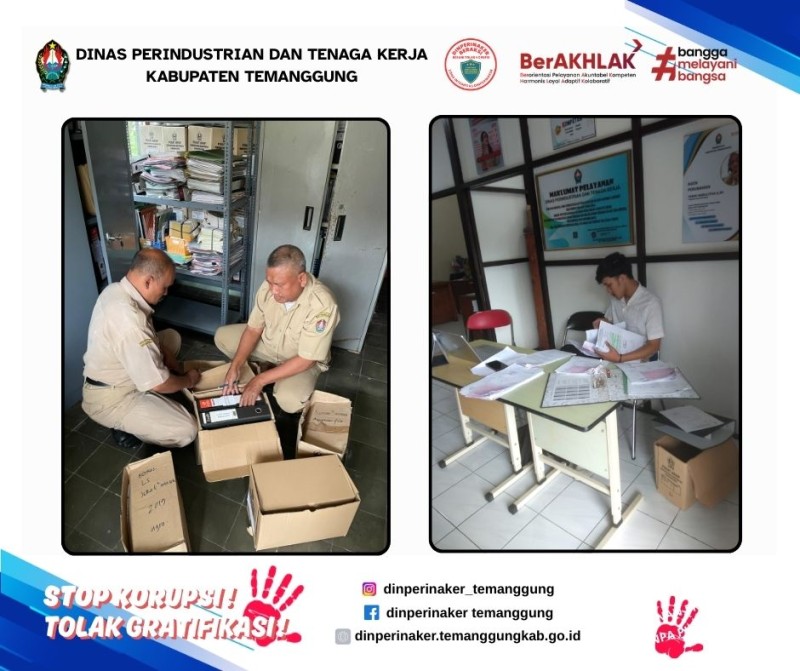 Dinperinaker Temanggung sedang melakukan pencatatan berkas inaktif 10 tahun ke belakang yang dikerjakan bersama oleh seluruh bidang.